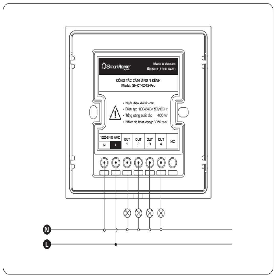 Thông số kỹ thuật Công tắc cảm ứng 4 kênh BKAV Smarthome