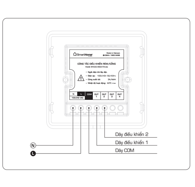 thiết bị điện. Khi đèn chỉ thị sáng mờ, tương ứng với trạng tắt của thiết bị điện.